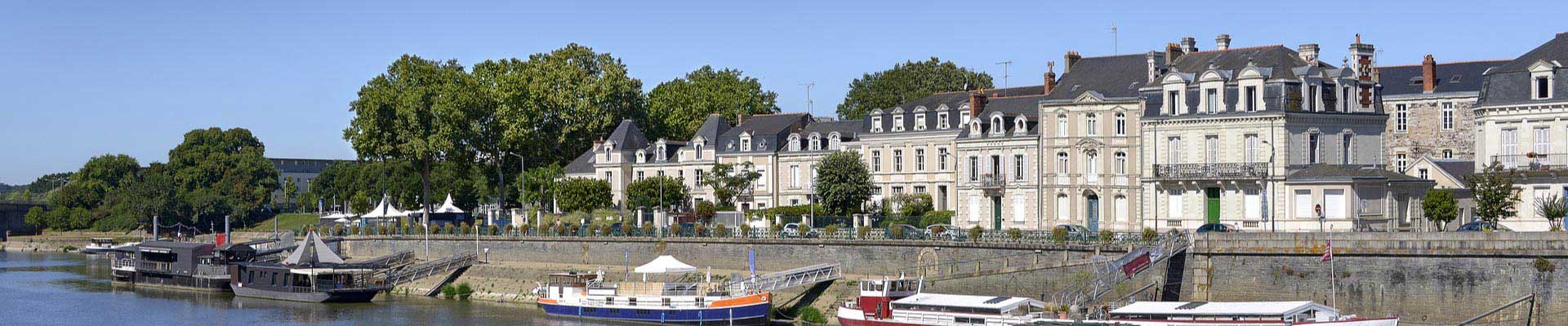 تقع في منطقة باي دو لا لوار في غرب فرنسا. تقع على بعد 90 كم من مدينة نانت، عاصمة المنطقة. في المدينة مقسمة إلى قسمين على نهر مين، هناك 6 جسور تربط كلا الجانبين. أنجيه، التي أطلق عليها الرومان اسم جولياموجوس، كانت عاصمة مملكة أنجو التي كانت موجودة في المنطقة حتى الثورة الفرنسية عام 1789.