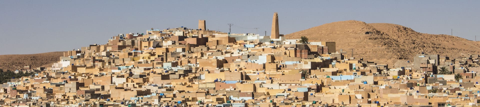 Located in the Sahara Desert, along the Mzab, Ghardaia is the capital city of the Ghardaia Province. The walled city is divided into 3 sections. The city features the remains of many fortified walls, minaret towers, desert-hued clay homes, and spacious cemeteries. Due to its geographic location the city has a hot desert climate, with hot and dry summers and mild and rainy winters. The Sirocco winds cover the city in dust and sand, especially during the summer. The Ghardaia Cemetery is one of the city’s most important sites. The Ghardaia Carpet Festival is one of the city’s most important events. The festival, which receives a lot of attention from tourists from all around the world, features a variety of hand-woven products. Ghardaia’s eating and drinking culture is based on Algerian cuisine.